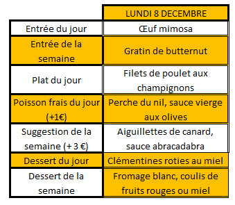Nos plats et suggestions sont accompagnés d’un légume et d’un féculent