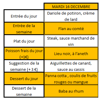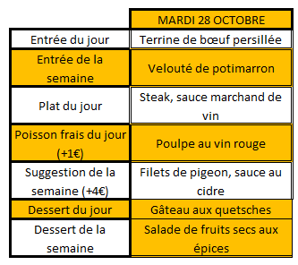 Nos plats et suggestions sont accompagnés d’un légume et d’un féculent