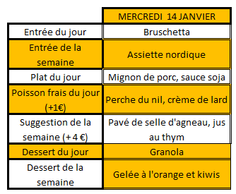 Nos plats et suggestions sont accompagnés d’un légume et d’un féculent